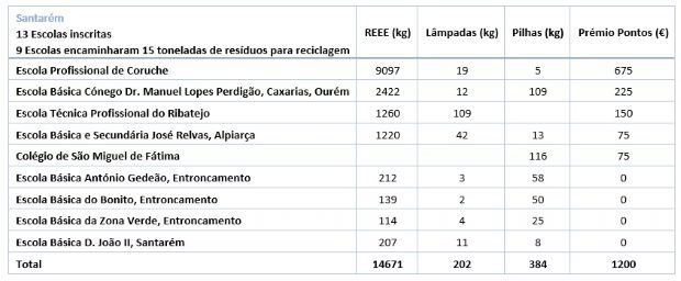 As 9 escolas do distrito de Santarém que participaram ativamente na 11ª edição da “Escola Electrão” recolheram um total de 15 toneladas de pilhas, lâmpadas e equipamentos elétricos usados.
