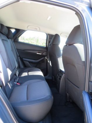 Na parte traseira a habitabilidade é boa e muito melhor do que no Mazda 3, automóvel no qual o CX-30 se baseia. Para transportar três pessoas o 3 apresentava-se um pouco apertado e, pessoas mais altas bateriam com a cabeça no tejadilho devido ao seu formato inclinado. Isso não acontece no CX-30, onde existe imenso espaço para a cabeça, levar três pessoas não seria nenhum sacrifício dado que a carroçaria é larga o suficiente, sendo que o único ponto fraco é no banco central pois o desnível do veio de transmissão é significativo.