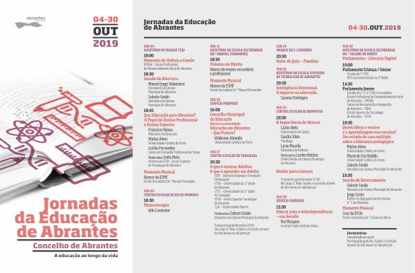 O apelo é participar e acompanhar as iniciativas que se desenvolvem ao longo destes dias nas Jornadas da Educação de Abrantes, para bem dos alunos e de toda a comunidade escolar.