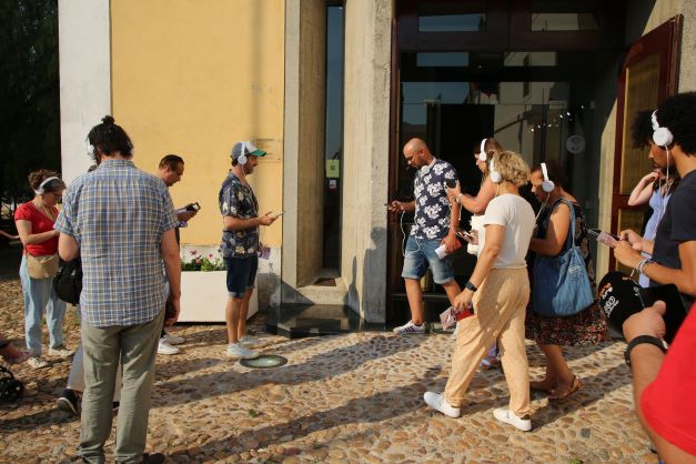 Na ocasião, o ator e criativo da Casa da Esquina responsável pelos textos do audiowalk de Abrantes, Ricardo Correia, explicou que “este percurso sonoro implicou uma recolha histórica e contou com a colaboração de vozes locais”. Neste percurso sonoro é possível descobrir várias narrativas que cruzam tempos sobre a cidade de Abrantes, desde a visita de Filipe II de Espanha, à pregação de Gil Vicente, às invasões francesas ou ao Teatro S. Pedro.