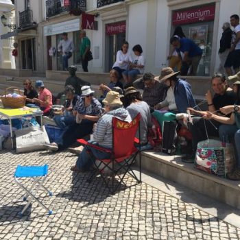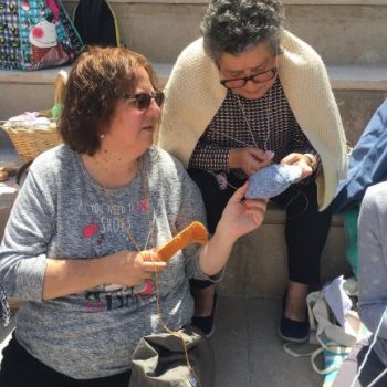 As voluntárias juntaram-se na Praça Barão da Batalha, em Abrantes, no passado dia 8 de junho, para uma manhã de tricot em público.