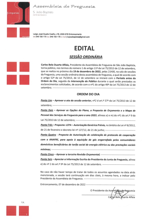 Entroncamento: Rui Bragança tomou posse como presidente da Junta de Freguesia de São João Baptista