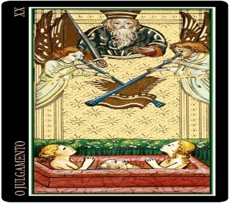 Esta carta indica um novo ciclo de vida. Os seus atos, escolhas e decisões têm consequências e terá de responder por elas. Procure agir mais com o coração, saiba ouvir aquilo que ele lhe pede e vá ao encontro do que a faz feliz, pois sem paixão não terá realização, seja em que área for da sua vida. A sua carta dominante indica, também, que muitas situações da sua vida marcam o final de um ciclo, estando apto a passar para um novo nível. A Carta O Julgamento pode anunciar mudanças. Pode indicar um matrimónio ou um divórcio, um contrato, ou o fim dele. Qualquer que seja a situação, chegou ao final de um ciclo, será avaliado e, conforme o seu desempenho, passará a um novo patamar.