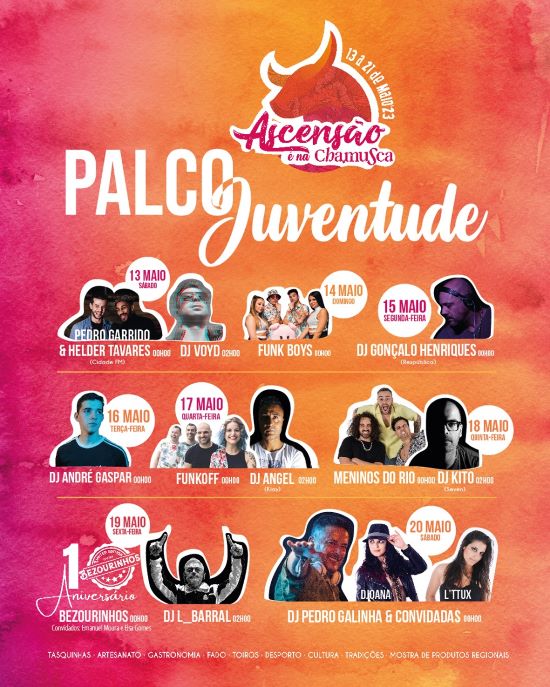 No Palco Juventude, no Parque Municipal, o programa começa às 00h00 e segue pela madrugada dentro com a atuação de grandes bandas e DJ’s do panorama nacional. O Dj Pedro Garrido e Hélder Tavares, da Cidade FM, e o DJ Voyd abrem a primeira noite (respetivamente às 00H00 e às 02H00 de 13 de maio), segue-se Funk Boys (00H00 / 14 de maio), o Dj Gonçalo Henriques, da discoteca Respública (00H00 / 15 de maio), o Dj André Gaspar (00H00 / 16 de maio), FunkOff e o DJ Angel da discoteca Kiay (respetivamente às 00H00 e às 02H00 de 17 de maio), Meninos do Rio e DJ Kito, da discoteca Seven (respetivamente às 00H00 e às 02H00 de 18 de maio). Na sexta-feira (19 de maio às 00H00) o palco é dos Bezourinhos com o espetáculo de comemoração do seu 10º aniversário, que terão como convidados os artistas Emanuel Moura e Elsa Gomes. A animação continua pela noite dentro com o DJ L_Barral (02H00). O Palco da Juventude encerra com o Dj Pedro Galinha e as convidadas Dj Joana e L’TTux que prometem uma noite animada recheada de grandes músicas (00H00 de 20 de maio).
