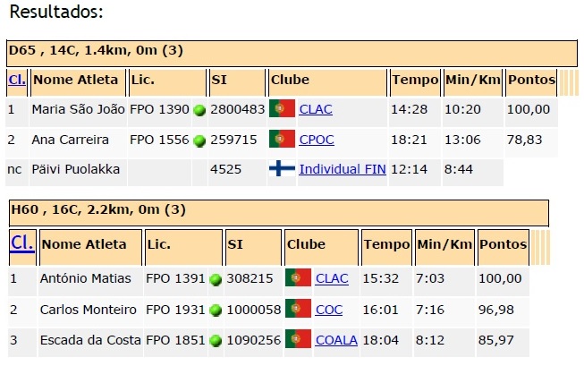 O CLAC participou na 1ª Prova Taça Portugal Vitalis de sprint de Orientação Pedestre, com dois atletas, Maria São João (escalão D65) e António Matias (escalão H60). Ambos os atletas venceram nos seus escalões.