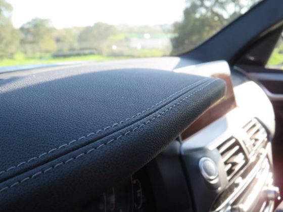 Tudo está coberto por material suave e pele, é difícil encontrarmos plásticos na cabine, e os que existem estão concentrados na consola central, e é um plástico piano black muito agradável ao toque. O interior também está cheio de apontamentos interessantes. Para começar o centro das portas, assim como o topo delas e do tablier têm pormenores de pesponto, que dá um ar de requinte e qualidade ao interior. Por outro lado, temos a inscrição X3 na consola central e junto dos puxadores das portas, um pormenor que achei interessante. Os bancos têm um encaixe ótimo e são muito confortáveis com uma pele ótima. A pele do volante também é ótima, e sendo o volante do pack é um volante com uma pega bem desportiva. A qualidade dos materiais do volante também supera os seus concorrentes, sendo que a parte central do mesmo é em pele com efeito de pesponto (ao invés do habitual plástico ou borracha).