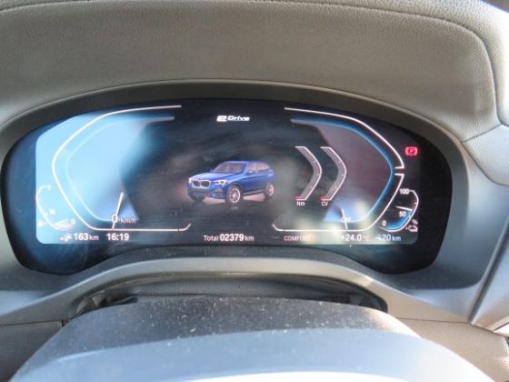 Mas como já referi, apesar de híbrido, o X3 30e não deixa de ser um BMW, e a condução desportiva e performance está toda lá. Apesar de ser um SUV a suspensão M faz um excelente trabalho e o X3 agarra bem as curvas, tal como os bancos desportivos agarram o nosso corpo. Ao sairmos das curvas também temos uma disponibilidade enorme, graças ao binário instantâneo disponibilizado pelo motor elétrico. O X3 30e é capaz de despachar o sprint dos 0 aos 100 em 6.3s (feitos por mim), o que é bastante impressionante para um SUV, sendo capaz de envergonhar muitos carros que se dizem desportivos.