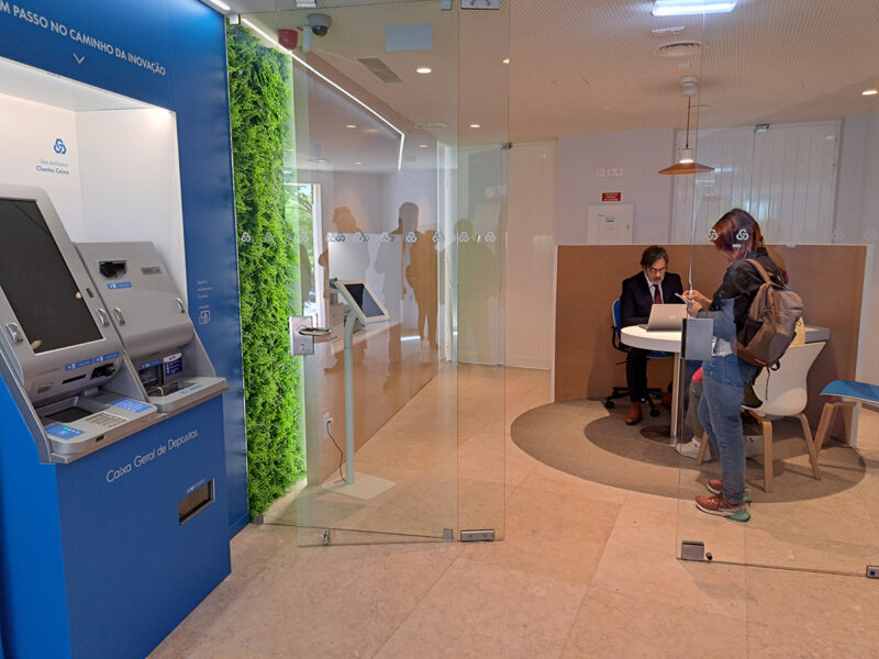 A agência mantém o atendimento presencial, habitual numa agência bancária, com a exceção do serviço de tesouraria, que será assegurado pela nova VTM e restantes equipamentos da área automática, dotado de duas máquinas automáticas (ATM).