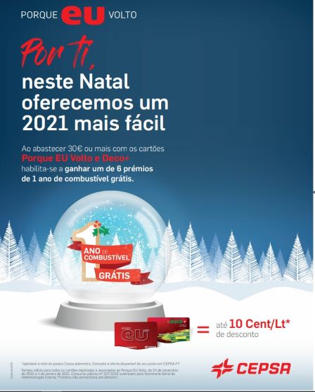 A Cepsa, em parceria com a Deco, Associação para a Defesa do Consumidor, lança uma campanha de Natal que garante poupanças e prémios variados, através da utilização dos cartões “Porque EU Volto” e “Deco +”.