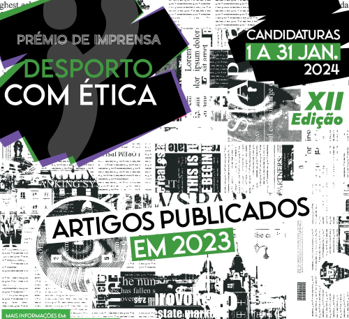 Entre 1 e 31 de janeiro podem candidatar-se ao Prémio de Imprensa «Desporto com Ética 2023» jornalistas e/ou colaboradores/as de órgãos de comunicação social portuguesa, com sede em Portugal Continental, nas Regiões Autónomas dos Açores e da Madeira ou na diáspora. Os trabalhos jornalísticos devem ter sido publicados entre 1 de janeiro e 31 de dezembro de 2023.