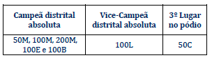 Carolina Carpinteiro – Nadou 8 provas e subiu ao pódio por 7 vezes de acordo com a seguinte tabela: