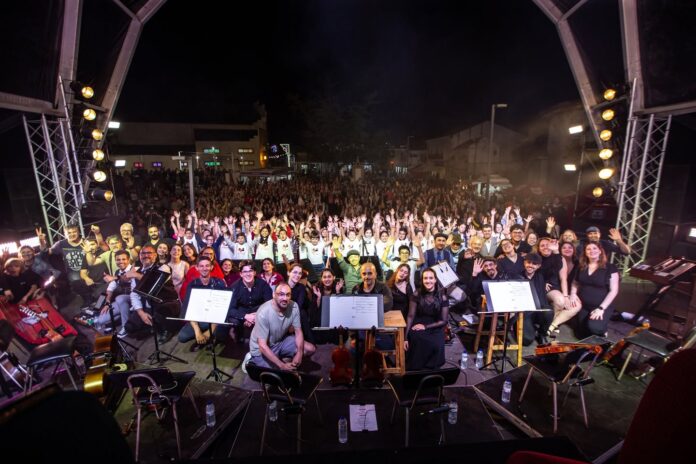 Em palco esteve um coro de dez elementos, uma secção de cordas de seis elementos, uma banda base de oito elementos, três atores, duas cantoras convidadas e cento e quarenta crianças do concelho da Chamusca a cantarem a canção original de Pedro Dyonysyo, “A História que um dia também vais contar”, que explica o 25 de Abril aos mais novos. Os pequenos intérpretes cantaram ainda, acompanhados pela banda e pela fadista convidada, Marisa Ferreira, uma canção original de José Pinhal – “Chamusca, Linda Vila Portuguesa”.