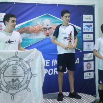 A Maria Inês Cochicho e o Tiago Trincão subiram ao pódio, ambos em 3º lugar dos respetivos escalões! O Tiago alcançou o mínimo para participar nos Campeonatos Nacionais na prova de 100 livres, estando desde já garantido este objetivo numa fase muito inicial da época.