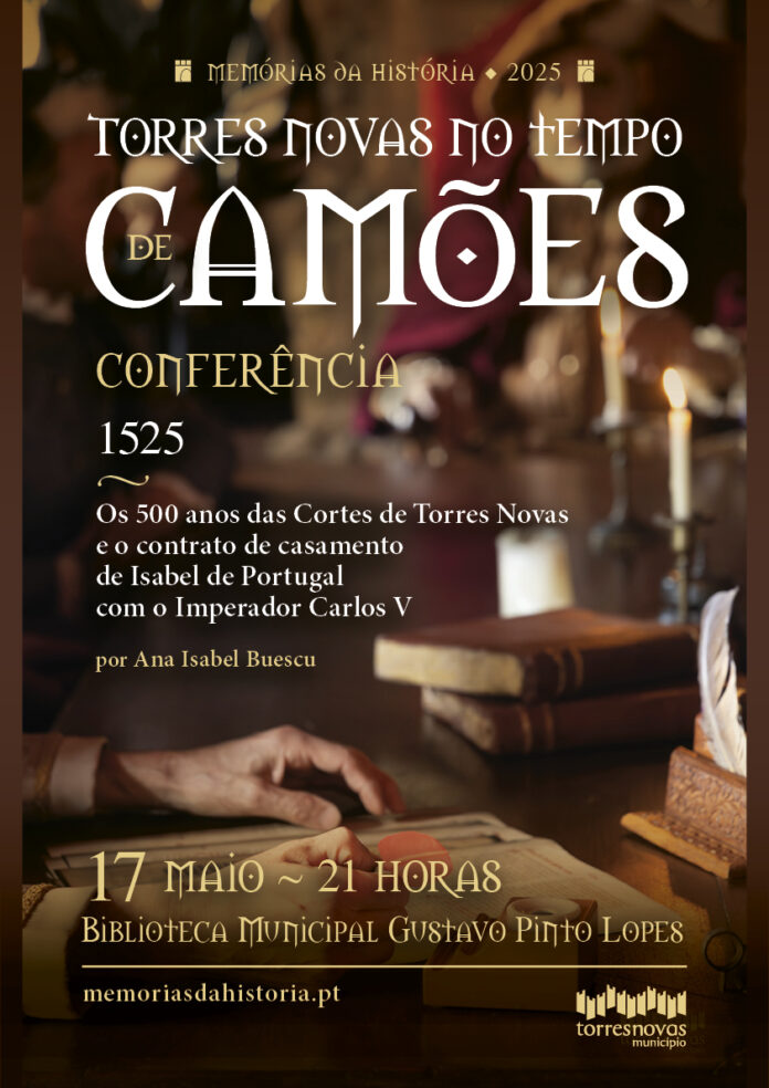 No âmbito da Feira de Época, que se realiza de 29 de maio a 1 de junho, e cujo tema é «Torres Novas no tempo de Camões», a Biblioteca Municipal Gustavo Pinto Lopes vai receber, no dia 17 de maio, a partir das 21 horas, a conferência «1525 – Os 500 anos das Cortes de Torres Novas e o contrato de casamento de Isabel de Portugal com o Imperador Carlos V», tendo como oradora Ana Isabel Buescu.