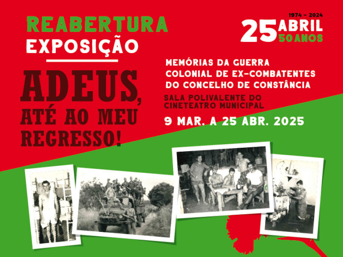 A exposição Adeus, até ao meu regresso! – Memórias da Guerra Colonial de Ex-combatentes do Concelho de Constância, vai regressar à Sala Polivalente do Cineteatro Municipal de 9 de março a 25 de abril, às quintas, sextas-feiras e sábados, das 14H00 às 128H00.