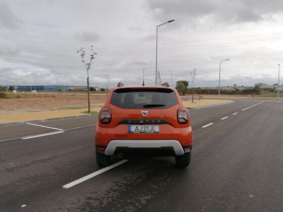 Passando para a condução mais normal, em percursos urbanos o Duster é ótimo de conduzir, tem a direção leve, a suspensão também é leve e não sentimos praticamente as irregularidades da estrada. Para além disso, temos uma posição de condução elevada que nos ajuda a antecipar a nossa condução pois dá-nos uma vista privilegiada para o trânsito à nossa frente.