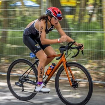 Após uma natação cheia de contacto, a nossa atleta saiu muito bem colocada, e colocou-se logo na transição na cabeça do pelotão de liderança da prova, que acabou por ser bastante numeroso, e nos primeiros km´s do ciclismo mesmo com quase todas as 30 finalistas deste Campeonato da Europa Jovem.