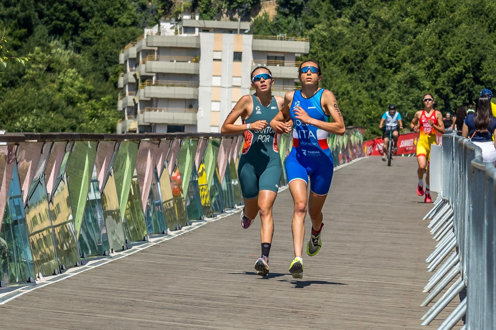 A primeira a entrar em acção foi a entroncamentense Catarina Santos, que viu a medalha de bronze escapar-se-lhe por muito pouco. Com a russa Dharia Zakharova a isolar-se logo no início do ciclismo, cedo ser percebeu que a vitória estava entregue. Catarina Santos seguiu assim no grupo perseguidor, procurando deixar para trás a italiana Margherita Voliani, que sabia lhe iria dificultar a última corrida. No entanto foi Alice Alessandri quem se isolou também no ciclismo, com uma vantagem que já não permitiu a Catarina Santos buscar a ambicionada medalha, que perdeu por apenas 8s. Fica porém mais uma excelente prestação da jovem atleta, face a atletas todas elas no último ano de escalão, e em que mais uma vez revelou muita solidez em toda a prova com bons parciais.