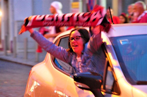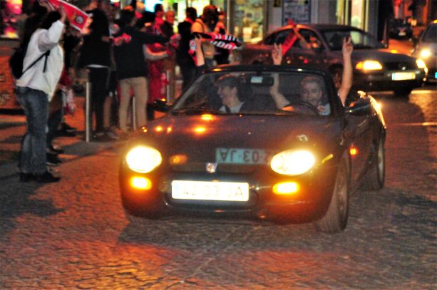 Dezenas de benfiquistas festejaram nas ruas da cidade do Entroncamento, como noutras cidades espalhadas pelo país e não só, a conquista do 37º Campeonato Nacional de Futebol.