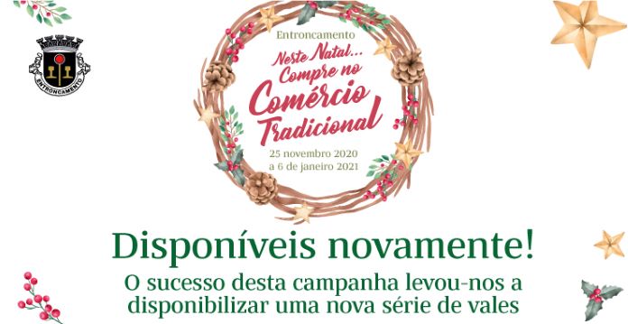 Tendo em conta o sucesso da Campanha “Neste Natal compre no Comércio Tradicional”, e tendo esgotado os primeiros vales desta campanha, o Município decidiu aumentar o número de vales, inicialmente previsto, tendo colocado à venda a partir desta quarta-feira, mais 1.000 vales.