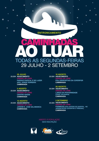 Durante os meses de julho, agosto e setembro o Município do Entroncamento, através dos serviços de Desporto, promove caminhadas ao luar.