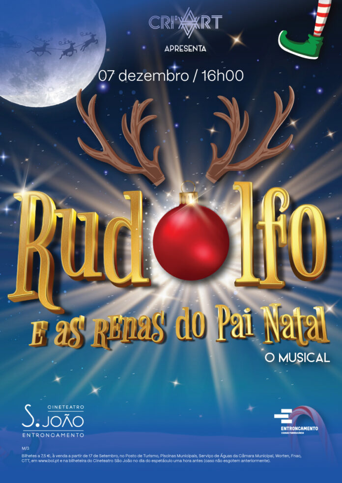 O Cineteatro São João recebe no dia 7 de dezembro de 2024, sábado, pelas 16h00, o teatro infantil “Rudolfo e as Renas do Natal”