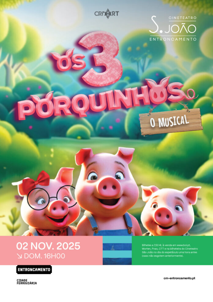 O Cineteatro São João recebe no dia 02 de novembro, domingo, pelas 16h00, o Teatro Infantil “Os Três Porquinhos”.