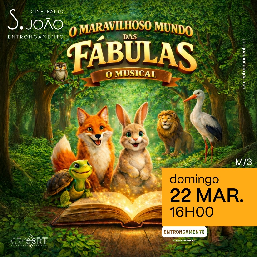 O Cineteatro São João vai acolher no próximo dia 22 de março, domingo, às 16h00, o espetáculo de teatro musical infantil “O Maravilhoso Mundo das Fábulas”, uma produção dirigida a crianças a partir dos 3 anos.
