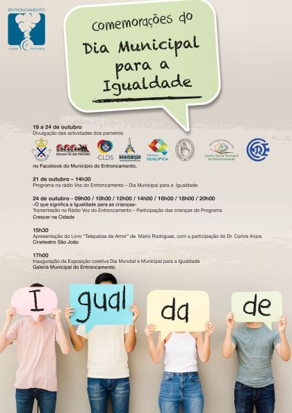 As Comemorações do Dia Municipal para a Igualdade decorrem no Entroncamento na semana de 19 a 24 de outubro com diversas atividades.