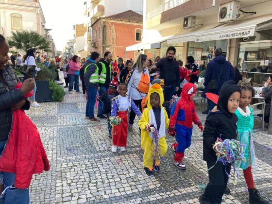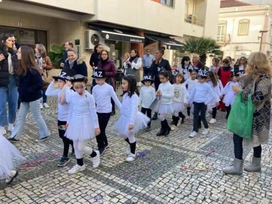 Os alunos desfilaram com as suas máscaras pela Rua Luís Falcão de Sommer até ao
