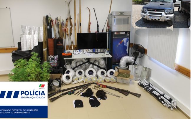 A detenção ocorreu na sequência de uma investigação a cargo da Brigada de Investigação Criminal da PSP do Entroncamento, que culminou com a realização de uma operação policial na qual foram executadas buscas domiciliárias, tendo sido possível apreender, quatro armas de fogo, quarenta e sete munições cal. 12GA, nove armas de arco e flecha, uma viatura de marca Mitsubishi, três estufas para cultivo e produção de cannabis, doze pés de Cannabis, oitocentos e treze gramas de folhas de cannabis, uma balança de precisão, setecentos Dólares, uma máquina de venda de tabaco, diverso material para cultivo e produção de cannabis, diversas chapas de matrícula de viaturas automóveis, diverso material informático e electrónico, vários utensílios habitualmente utilizados em furtos a residências/estabelecimentos e diversos electrodomésticos.