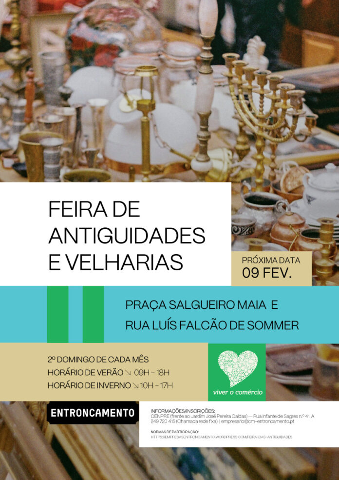 No dia 9 de fevereiro, próximo domingo, decorre mais uma edição da Feira de Antiguidades e Velharias do Entroncamento.