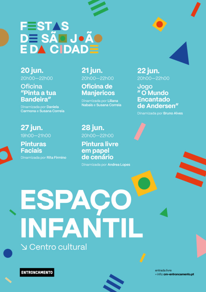 O Município do Entroncamento, promove e dinamiza atividades dirigidas a crianças, durante o período das Festas de São João da Cidade, nos dias 20, 21, 22 27 e 28 de junho no Centro Cultural do Entroncamento.