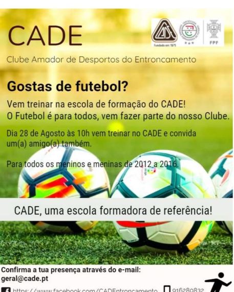 Se gostas de futebol, e nasceste entre 2012 e 2018, vem treinar na escola de formação do CADE.