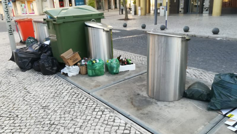 A nova Zona de Restauração do Mercado Municipal do Entroncamento, inaugurado esta sexta-feira, produz lixo que a ilha ecológica não tem capacidade para receber, como mostra a foto que publicamos.