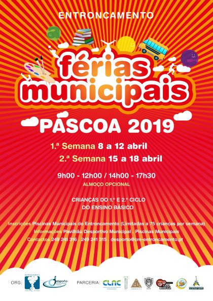 Dirigidas aos alunos do 1º e 2º ciclos do ensino básico das escolas do Concelho, as Férias Municipais decorrem durante duas semanas, sendo a primeira semana de 8 a 12 de abril e a segunda semana de 15 a 18 de abril, entre as 9h00 e as 12h00 e entre as 14h00 e as 17h30.