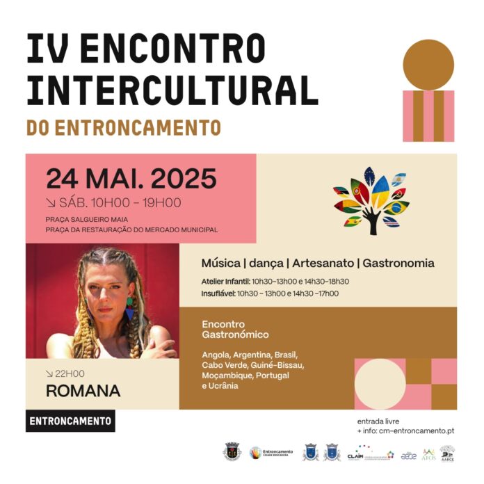 O IV Encontro Intercultural do Entroncamento decorre no dia 24 de maio, sábado, entre as 10h00 e as 19h00, na Praça Salgueiro Maia e Praça da Restauração do Mercado Municipal.