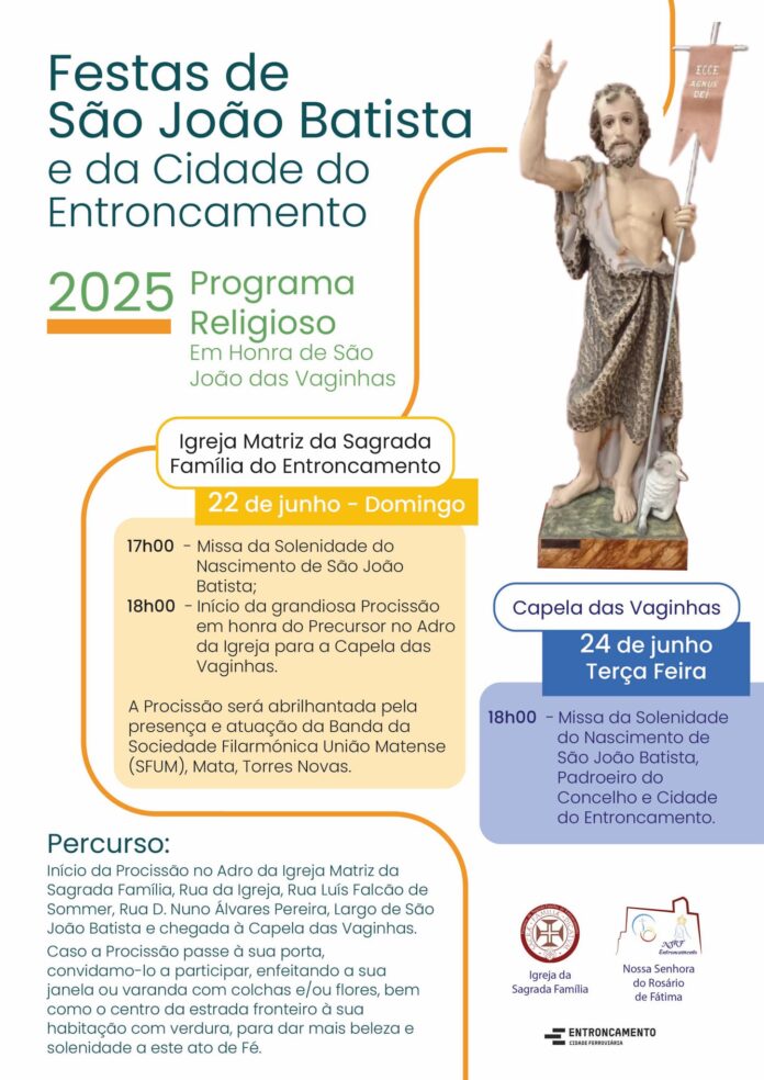 Numa organização da Igreja da Sagrada Família, Nossa Senhora do Rosário de Fátima e do município do Entroncamento, o programa religioso está integrado nas Festas de São João Batista e da Cidade.