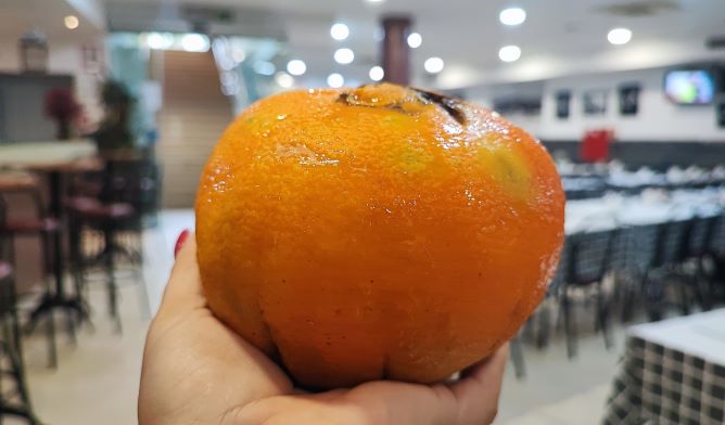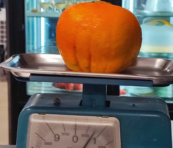 Uma laranja com 800 gramas colhida na Quinta das Vendas no Entroncamento por, Graça Marques.