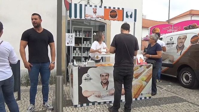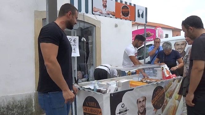Marco Costa o concorrente do programa da TVI Casa dos Segredos, que se tornou conhecido pelas suas tortas está nas Festas da Cidade com uma banca onde as pessoas fazem fila para comprar e tirar selfies.