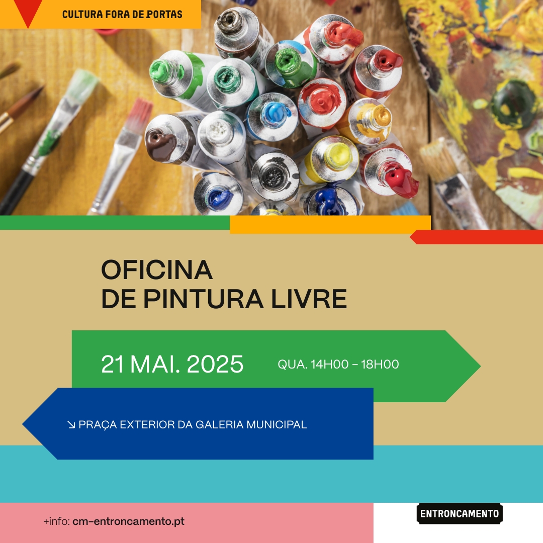 No âmbito do projeto Cultura fora de Portas, decorre no dia 21 de maio, quarta-feira, entre as 14h00 e as 18h00, na praça exterior da Galeria Municipal, a Oficina de Pintura Livre.