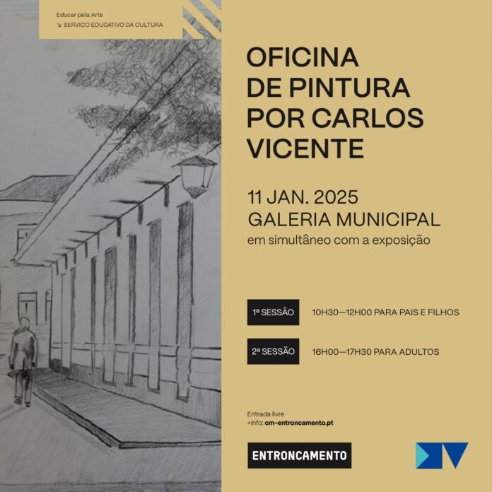 A Galeria Municipal do Entroncamento recebe no dia 11 janeiro de 2025, uma Oficina de Pintura por Carlos Vicente, integrada na Exposição do artista “Retrospectivamente Condicionado” pela arte., que estará patente até dia 16 de janeiro de 2025.
