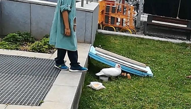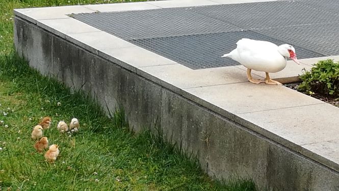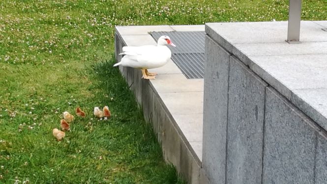 A poucos dias do início dos festejos do Entroncamento em Flor e depois das Festas da Cidade, a pata e os seus seis pintainhos terão de ir até outras paragens, mas todos desejam que depois regressem.