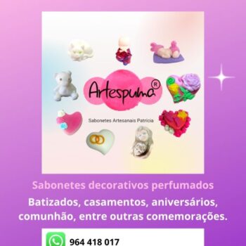 A Patrícia Vicente, mora no Entroncamento, tem 36 anos, produz sabonetes decorativos e perfumados, é mãe, estuda na Universidade Aberta em Lisboa e criou a empresa Artespuma – Sabonetes Artesanais, para a qual pede ajuda e criou uma campanha de crowdfunding, “para fazer com que a minha marca e o meu trabalho cheguem a outro patamar”.