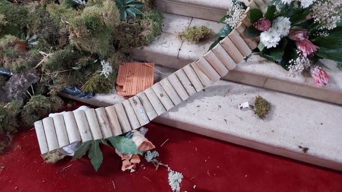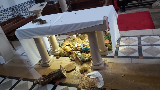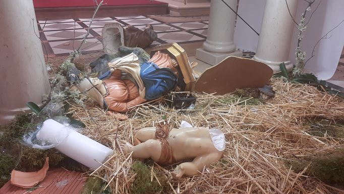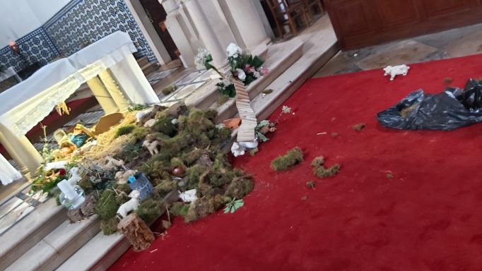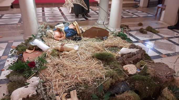 O Presépio montado em frente ao altar da Igreja da Sagrada Família do Entroncamento foi vandalizado na manhã deste domingo 26 de dezembro, após a habitual celebração da missa das 9h30, transmitida em direto no Facebook da Paróquia, aqui no EOL e na Rádio Voz do Entroncamento.