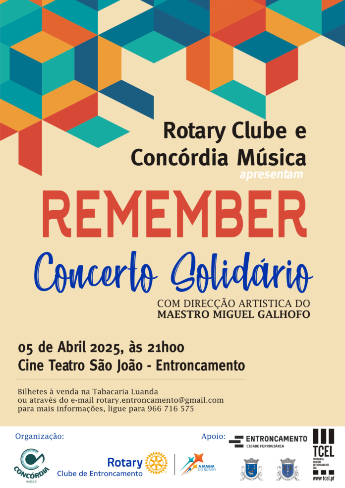 O Rotary Clube de Entroncamento em parceria com a Associação Concórdia Música, organizam um espetáculo que se vai realizar no próximo dia 05 de Abril de 2025 pelas 21 horas no Cine Teatro São João.