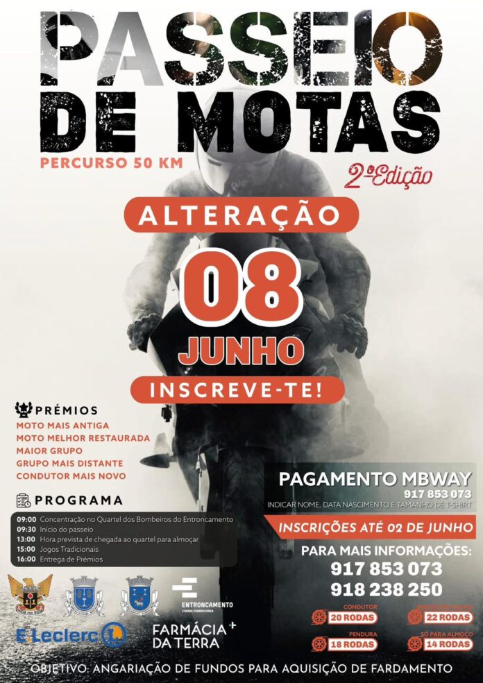 Com um percurso de 50 quilómetros, o 2.º passeio de motas têm as inscrições abertas até dia 2 de junho. Haverá prémios para a moto mais antiga, moto melhor restaurada, maior grupo, grupo mais distante e condutor mais novo.