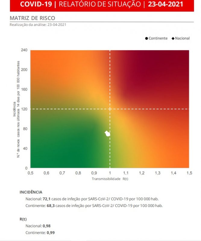 A nível nacional esta sexta-feira regista-se mais 1 morto, ontem registaram-se 4, num total de 16957, os infetados são agora 833397, mais 506, (ontem 637) os casos recuperados são 791751, mais 580, (ontem 521, os internados 384, (-11 que ontem, 395) e em cuidados intensivos 98, (-6 que ontem, 104).