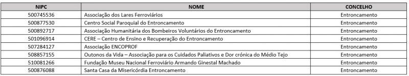 As entidades do Entroncamento que podem beneficiar da consignação são as seguintes: