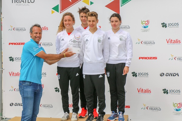 Atletas ainda cadetes em termos de competições nacionais, venceram o escalão em Portimão, e apuraram-se para o Campeonato da Europa de Clubes de Júniores, juntamente com a equipa do Alhandra Sporting Clube. Jovens triatletas encarnados alcançaram a 7ª posição da geral absoluta do campeonato nacional de estafetas mistas, que se dispoutou no passado domingo, em Portimão – Praia da Rocha.